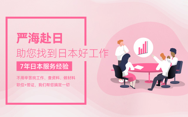 嚴海赴日(workinjapan.cn)是專業的赴日工作服務平臺,是大連嚴海人力資源有限公司旗下品牌。主要提供日本就職(工作簽)/日本留學(半工半讀),等最新工作信息和資訊,為想赴日工作的小伙伴們提供專業的、一對一的咨詢,為您職業生涯規(guī)劃、永居辦理、在日期間換職、轉換簽證等方面提供支援。